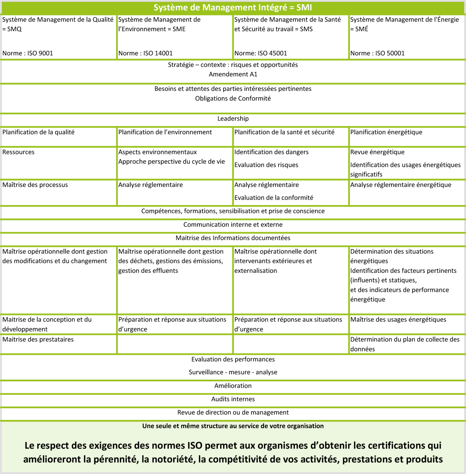- Ce système intègre les 3 ou 4 principales composantes qualité, sécurité, environnement et énergie afin de gérer au mieux les risques.